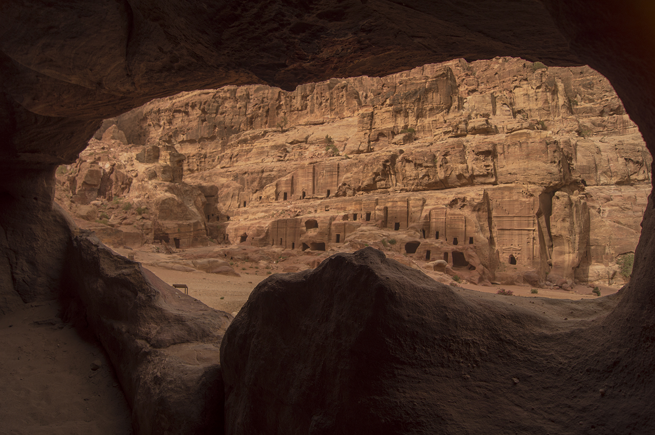 But Petra spans well beyond the Treasury building, an entire civilisation lived in the city of caves. Our great tour guide for the first part of the day, Ali, took us off-the-beaten-track after the Treasury into a 'No Climbing' area. He said if your friends with the guards it is never an issue (he was correct) and so here we are diving in and out of caves used for homes and tombs (and sometimes both) looking down onto the main city strip. One such cave even had a skylight :)