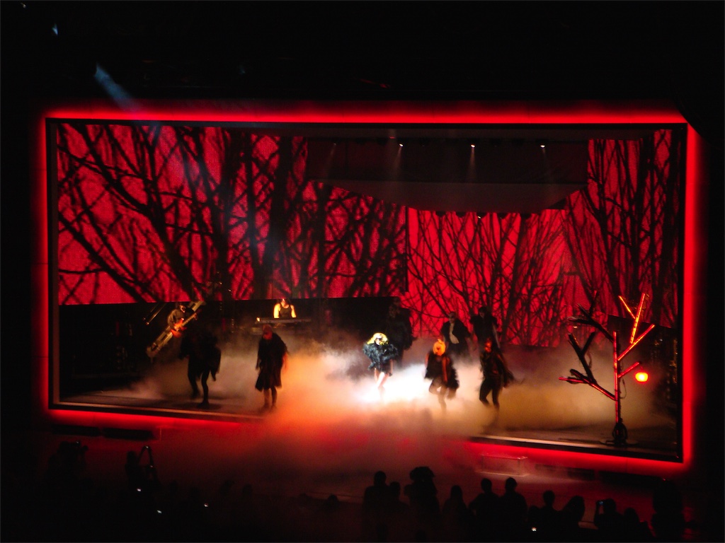Gaga played all her songs in an assortment of leotards, feathers and a red bikini. She went through all her hits, sang it all live (from what I could tell as she kept dropping into conversation with the audience in the middle of songs). There were only two songs I didn't recognise so was loving it. She sang speechless on a piano that looked, I can't even describe it. It was black pieces of wood just joined together randomly. One of her dancers picked her up with one arm between her legs and in the middle of Love Game she told the audience to whip out their d**ks (thankfully no one around me decided to take her up on that offer). Once again... kiddies should not have been at this show.