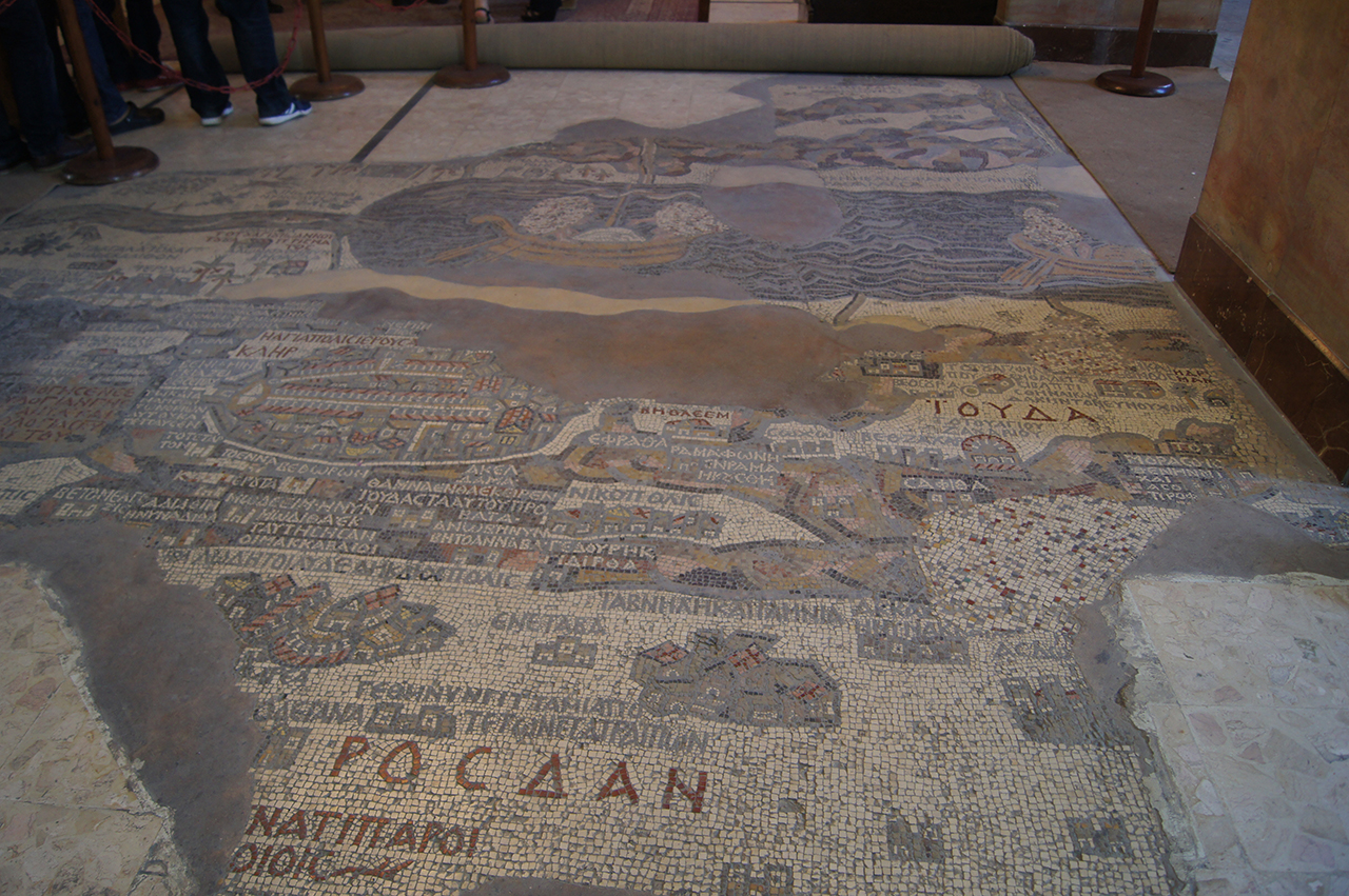 But enough of this sobering talk, if you ever find yourself lost in Jordan without a map then all you need to find is a city just outside of Amman called Madaba, and from there find the Church of St George. Inside on the floor you will find the remains of a sixth century mosaic map (supposedly the oldest map in the world) that depicts all of the Middle East to Turkey and the Mediterranean Sea. Much of the map was destroyed in a fire but a significant enough part remains of Jordan and Israel.